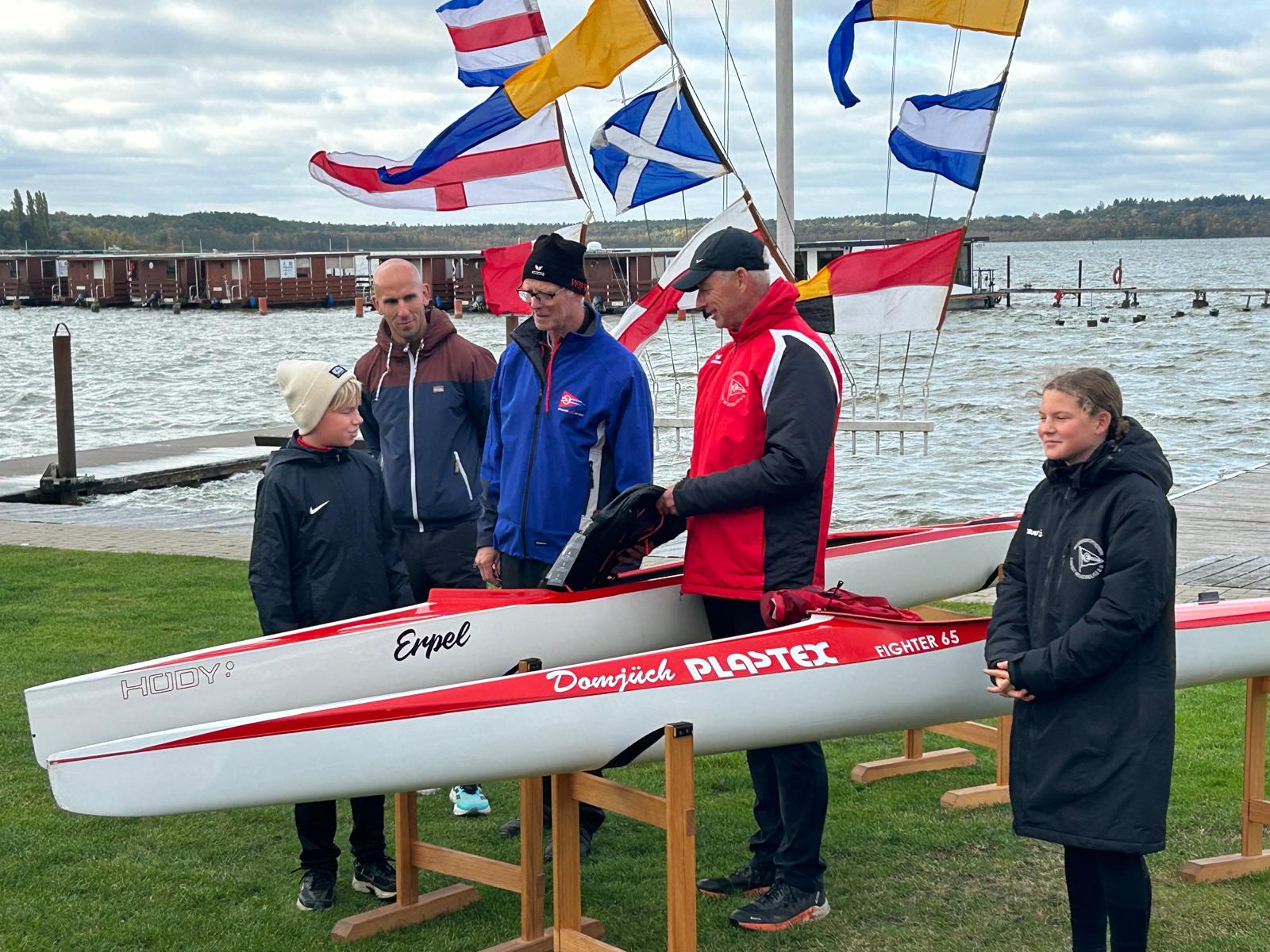 1. Vorsitzende des WSV, Hans Ebeling den ereignisreichen Tag. Ein schöner Brauch der Rennkanuten ist die Ehrung der besten Paddler der Saison. So konnten sich Raili Malchow und Jonas Krug sowohl durch ihre Erfolge in der vergangenen Saison als auch für ihre gute Trainingseinstellung über ein Präsent des Vorstandes freuen.